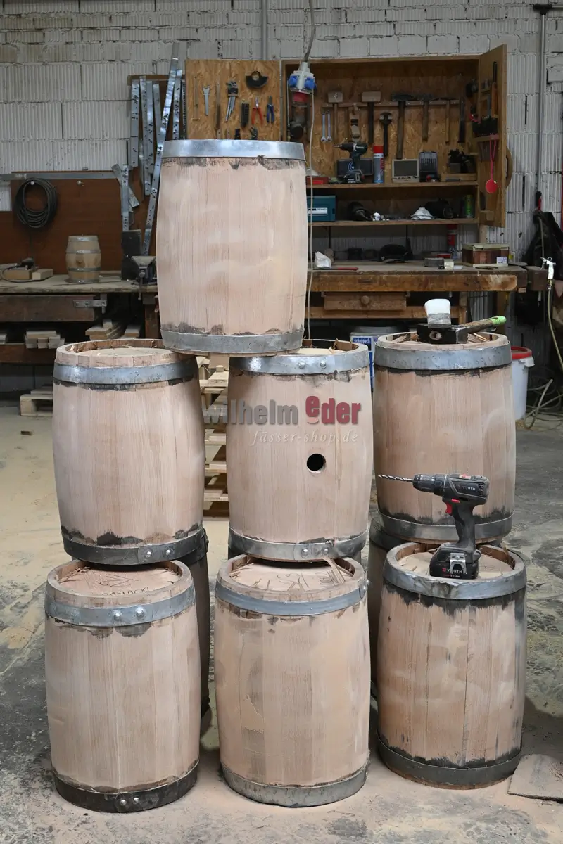 Wir produzieren die Rückbauten nicht auf Vorrat! Wir halten unser Frischeversprechen und fertigen die bestellten Fässer einmal monatlich für Sie in unserer Küferei an. Aus diesem Grund kann die Produktionszeit unter Umständen mehr als 30 Tage betragen.