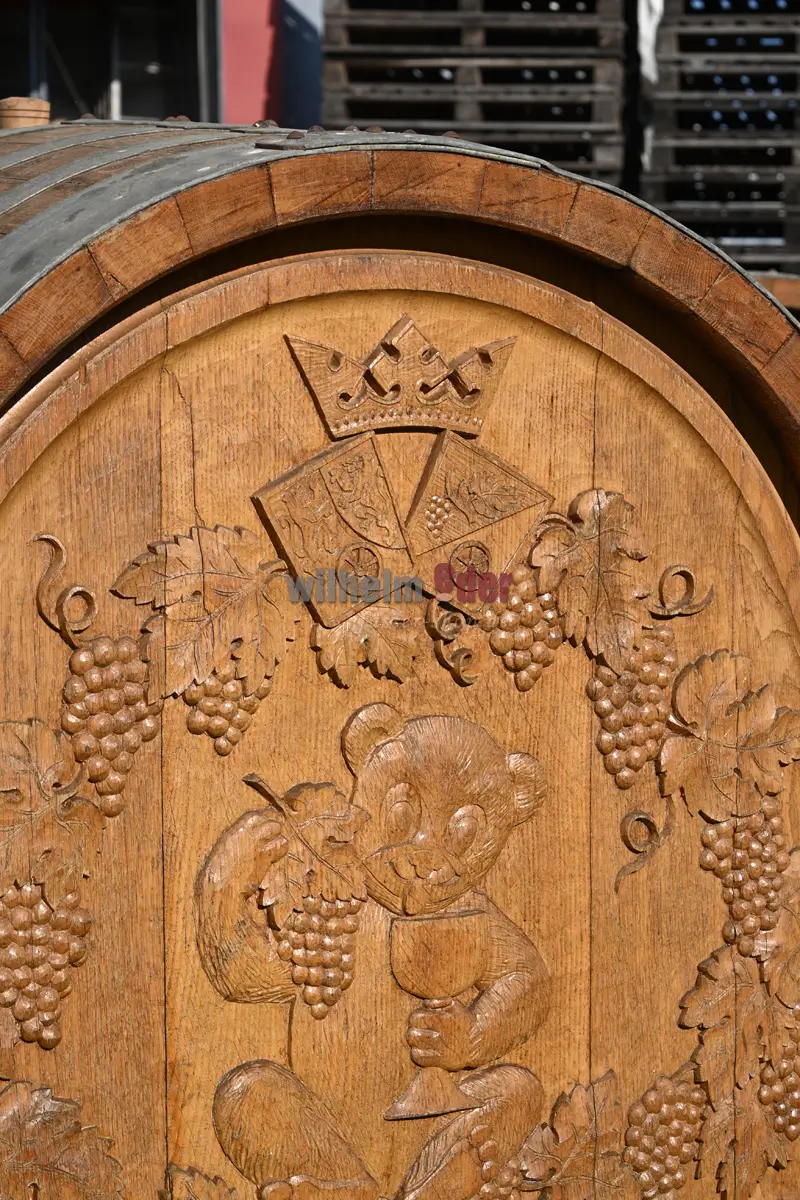 Produktinformationen "Eichenholzlagerfass ca. 1300 l - Beschnitzt Bär - Resale"