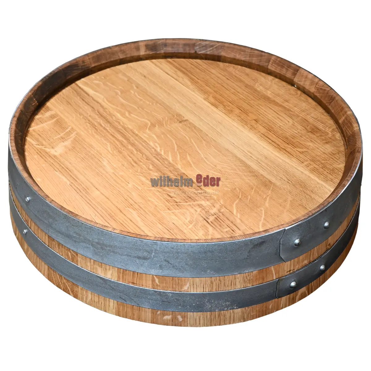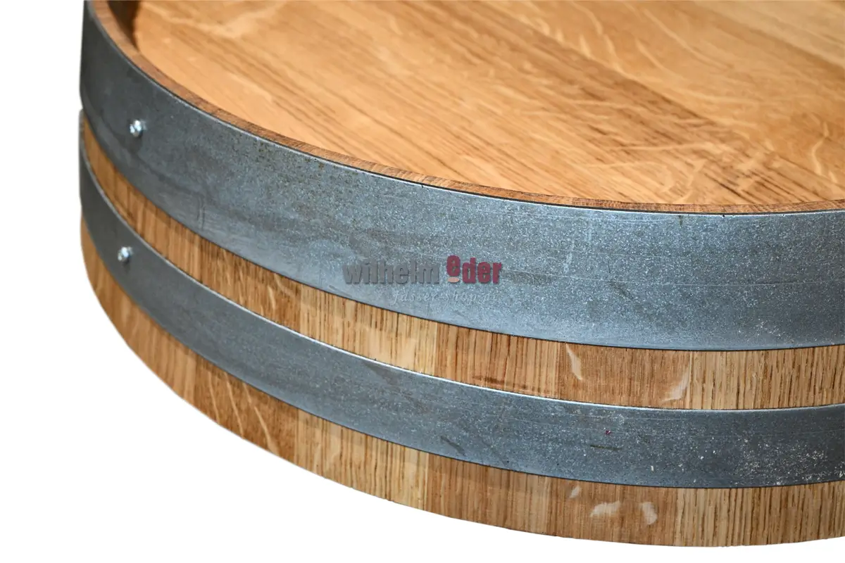 Aus alten Fässern fertigt unsere Schreinerei dekorative Fasskopfabschnitte. Bei alten Weinfässern wird der Kopf bei 9-15 cm abgeschnitten (Je nachdem wo die Fassreifen platziert sind). Die Fasskopfabschnitte Natur können Querriegel und Hersteller-Logos aufweisen. Die Fasskopfabschnitte werden in unserer Schreinerei von den Fässern abgetrennt, gesäubert, geschliffen, verleimt und geölt. Die Reifen sind nicht lackiert.