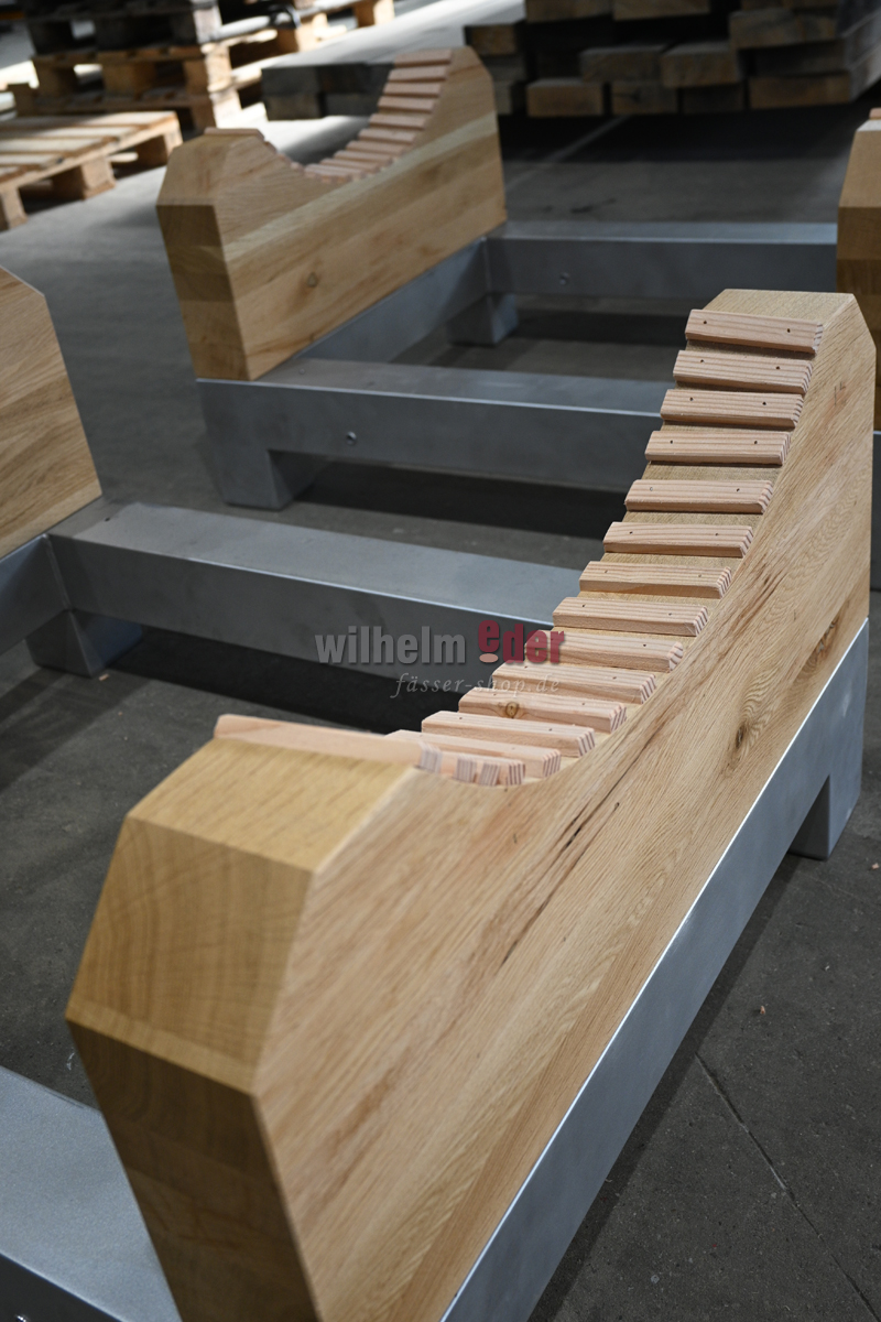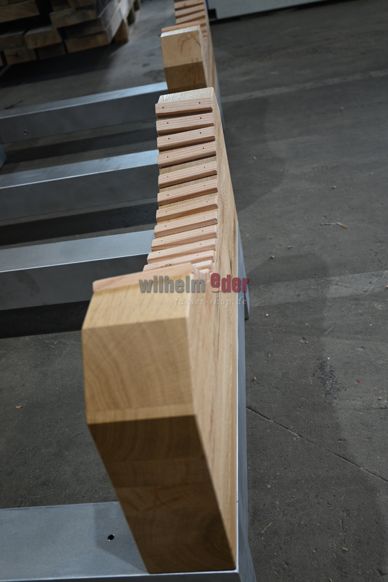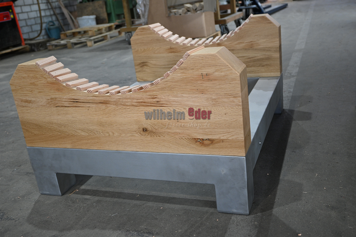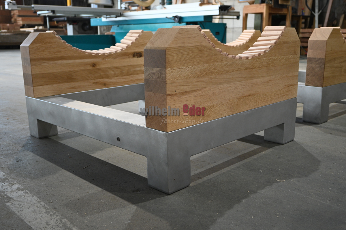 Fasslager Edelstahl / Eichenholz für ovale Fässer bis 25 hl