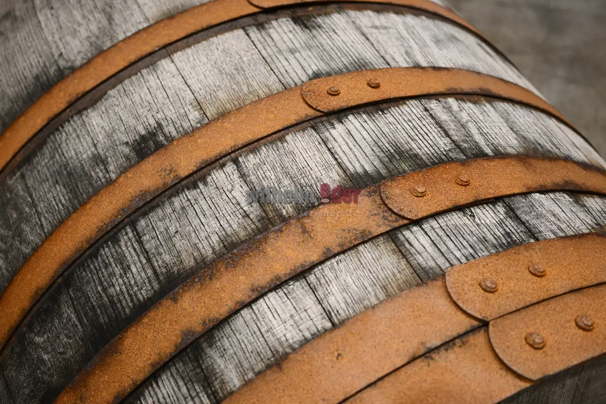 Frisch entleerte Sherry-Fino-Fässer. Die Fässer waren ca. 30 Jahre belegt. Die Dauben der frisch entleerten Fässer sind noch satt mit dem unfiltierten Sherry getränkt. Herstellung und Charakteristik:Fino wird aus der Palomino-Traube hergestellt und unterliegt einer besonderen Reifung, die als "biologische Reifung" bekannt ist. Dies bedeutet, dass der Wein während der Lagerung unter einer Schutzschicht aus Hefen (Flor) reift, die die Oxidation verhindert. Die biologische Reifung verleiht Fino seinen charakteristischen trockenen Geschmack und seine Frische. Aroma und Geschmack:Fino hat ein helles Strohgelb bis blasses Gold in der Farbe. Das Aroma ist geprägt von floralen Noten, Mandeln und einem Hauch von Meersalz. Der Geschmack ist trocken, leicht, mit einer erfrischenden Säure und einer subtilen Bitterkeit im Abgang. Fino-Sherry ist eine wunderbare Wahl für Liebhaber von trockenem, leichtem Wein, die die Komplexität und Nuancen der biologischen Reifung zu schätzen wissen.Standardmäßig werden die Fässer mit einem Silikonspund ausgestattet. Vorbelegte Holzfässer: Kerben im Holz, äußerliche Spannungsrisse oder unter Umständen ein unebener Boden sind keine Qualitätsmängel, sondern vielmehr durch die Eigenart der Bauweise und die Vorbenutzung der Fässer bestimmt. Die Funktionalität des Fasses ist dadurch nicht eingeschränkt. Die Fässer werden von uns bei der Ausgangskontrolle sehr sorgfältig auf Sensorik und technische Fehler geprüft. Für Cracks oder Risse, die während der Reifung auftreten, übernehmen wir keine Haftung. Eine mögliche und sinnvolle Reparatur ist keine Garantieleistung. Alle Bilder sind Beispielbilder und optische Abweichungen sind möglich.