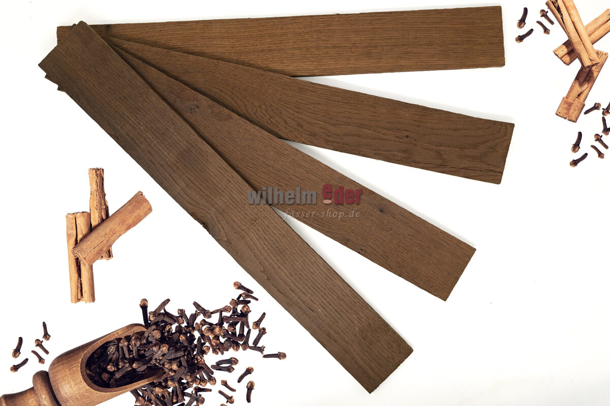 Französische Eiche. Kräftige Aromatik, gibt Röst- und Toastaromen an den Wein ab. Durch den Einsatz dieser Staves wird eine sehr schöne Toffee, Cafe Crème Aromatik erreicht.