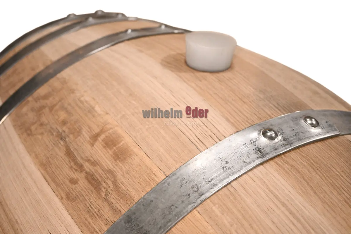 Ausgestattet ist das Fass serienmäßig mit einem Silikonspund. Lieferung ohne Bock oder Fasslager