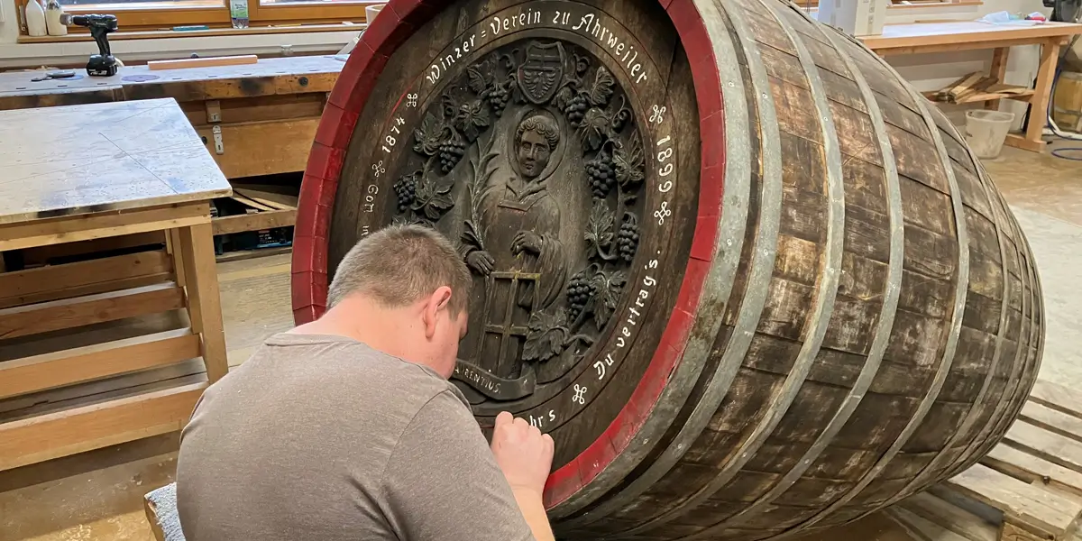 Mit unserem Laser verewigen wir Ihr Logo oder Widmung auf Ihrem neuen oder gebrauchten Holzfass. Außerdem bieten wir in Zusammenarbeit mit einem Künstler exklusive Beschnitzung Ihrer vorhandenen oder neuen Fässer an.