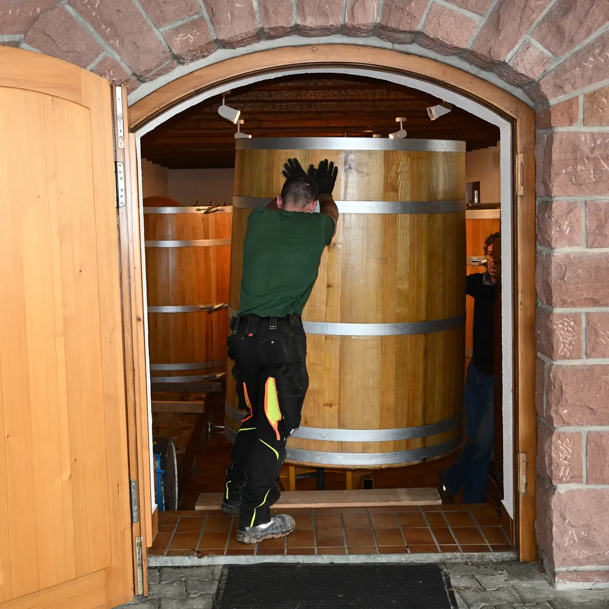Rund um das Holzfass bieten wir verschiedenen Service an. Das fängt mit intensiver Beratung an, geht über individuelle Fasslager bis hin zur Ein- und Auskellerung von Fässern.