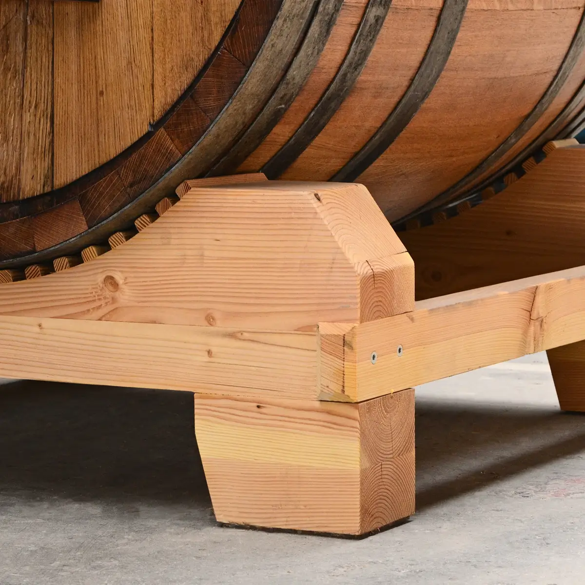 Wir fertigen Kundenindividuelle Fasslager an und bereiten vorhandene alte Holzfasslager für Sie wieder auf.