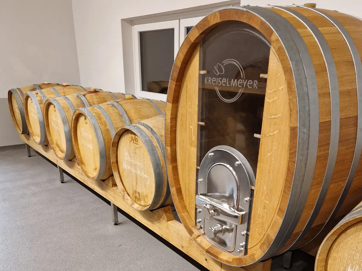 Ein Schauobjekt, das jetzt beim Weingut Kreiselmeyer steht, das Handwerk, Funktionalität und Transparenz harmonisch miteinander kombiniert.