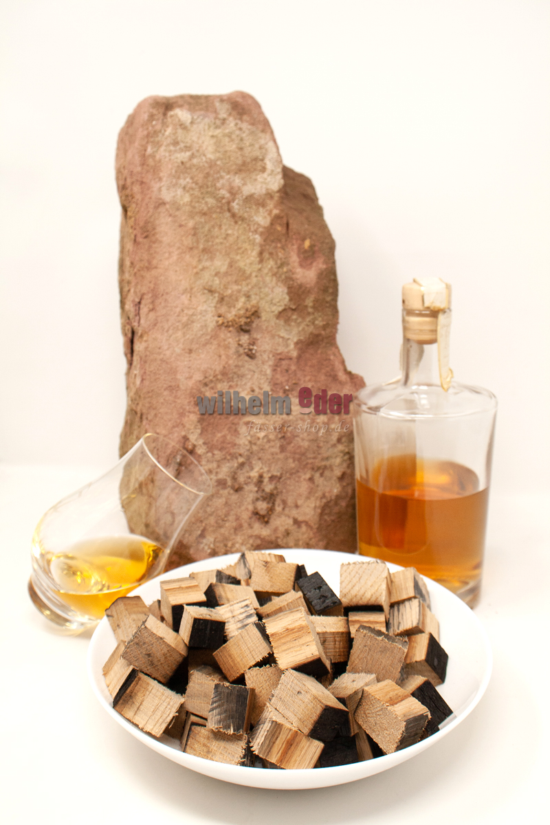 Die Cubes werden aus frisch entleerten Whiskyfässern, aus amerikanischer Eiche, produziert. Diese Cubes bieten Ihnen ein Aromapaket eines typischen torfigen Islay Whiskys.