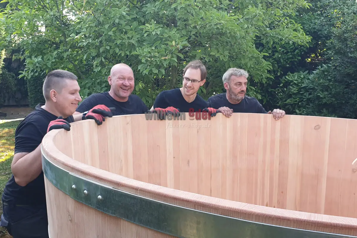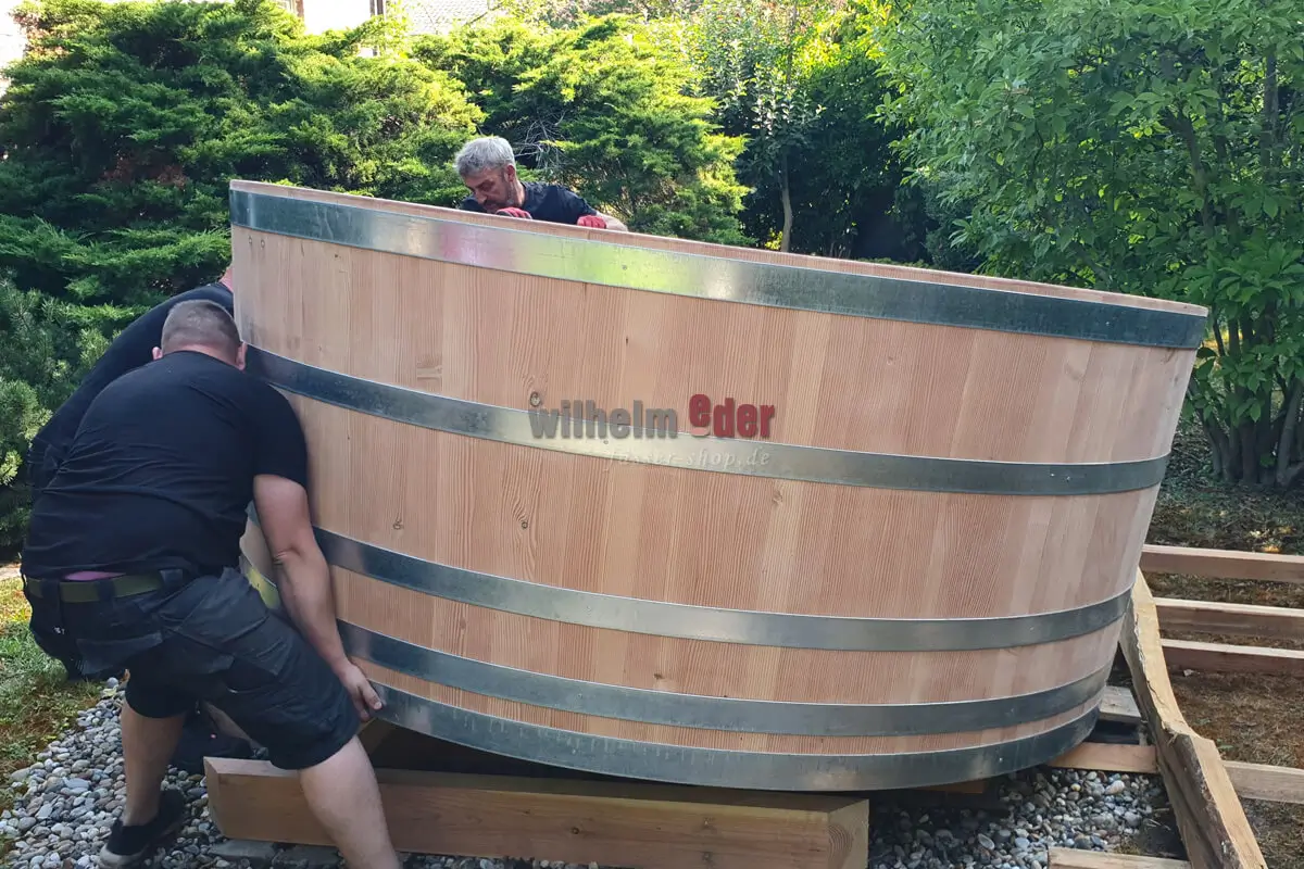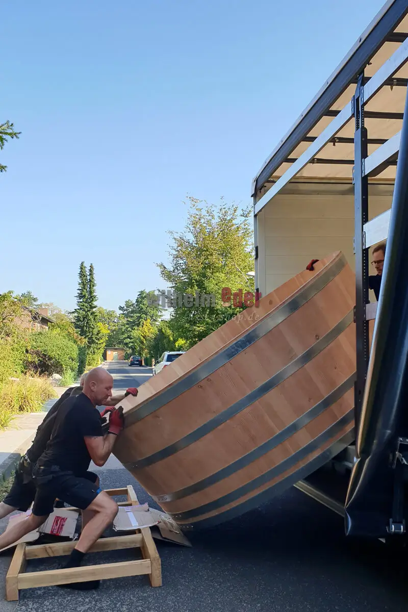 Wenn möglich fahren wir das mit unserem eigenen kleinen LKW oder Sprinter. Wenn das Badefass doch zu sperrig ist, wird noch ein ausreichend großer LKW gebucht und eine passende Anlieferung geplant.