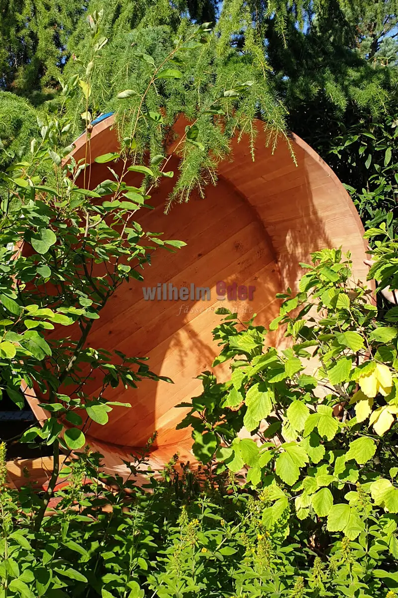 Vor der Auslieferung erfolgt jedoch der wichtigste Schritt! Der Badebottich wird gewässert und auf Dichtigkeit geprüft. Dies kann gerne bis zu 48 Stunden dauern. Holz ist ein Naturprodukt und erst bei diesem Test kann man sehen, ob der Bottich und das Holz wirklich dicht sind. Wenn jetzt noch etwas leckt, wird die Daube ausgetauscht. Keine Sorge das Wasser kommt unseren Pflanzen im Garten und in den Blumen- sowie Baumkübeln zugute.