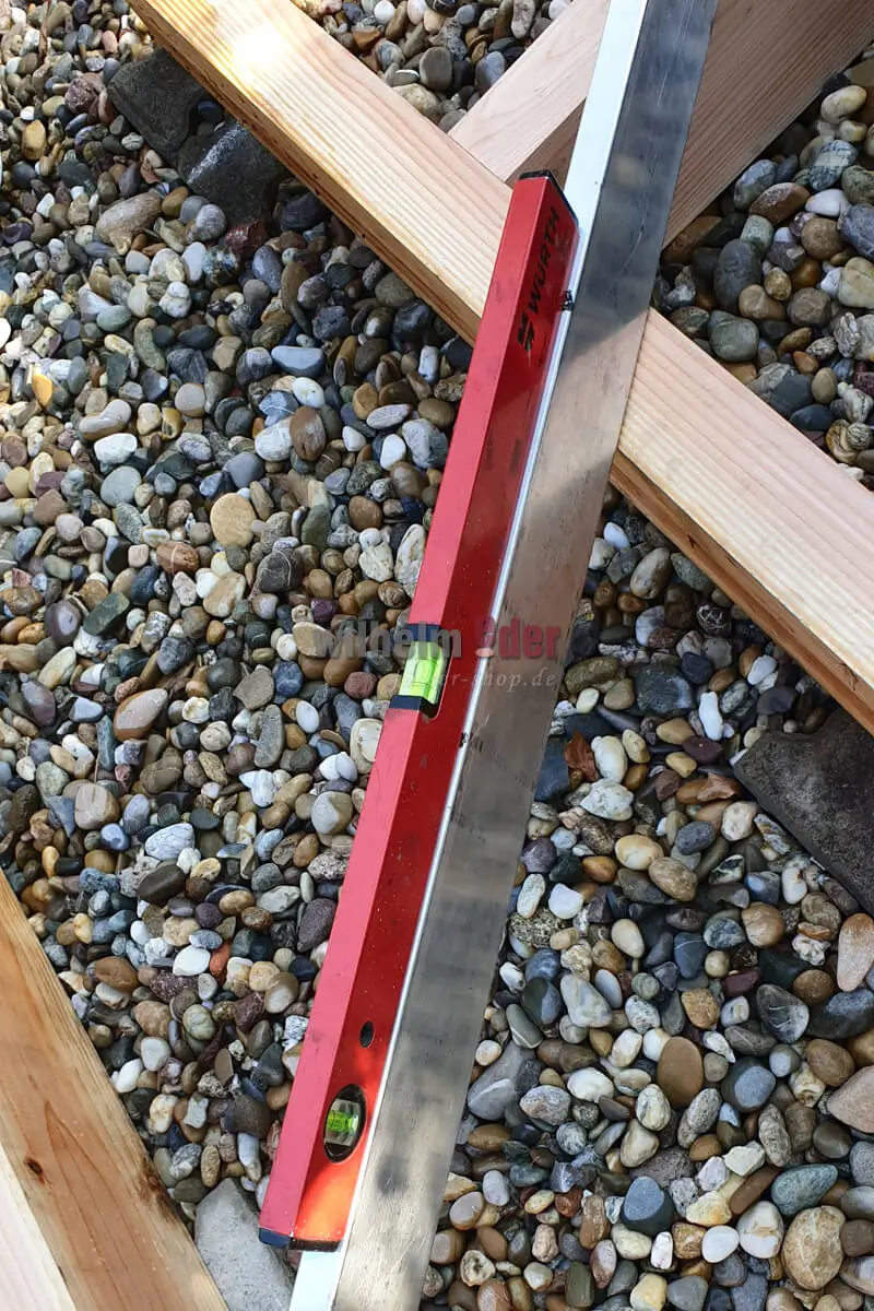 Zunächst wird das von uns ausgehobene und mit Steinen aufgefüllte Fundament für den Bottich überprüft, die Lager aufgestellt und mit Wasserwaage ausgerichtet. Dann geht es zurück zum LKW, um das gute Stück abzuladen. Schon das war kein einfaches Unterfangen. Der Badezuber war groß und dadurch recht unhandlich zum Abladen. Da die Straße auch nicht sonderlich breit war, mussten wir auch den ein oder die andere Autofahrer:in bitten zu drehen und anders zu fahren. Nach dem Abladen fängt aber der schwierigste Teil an…
