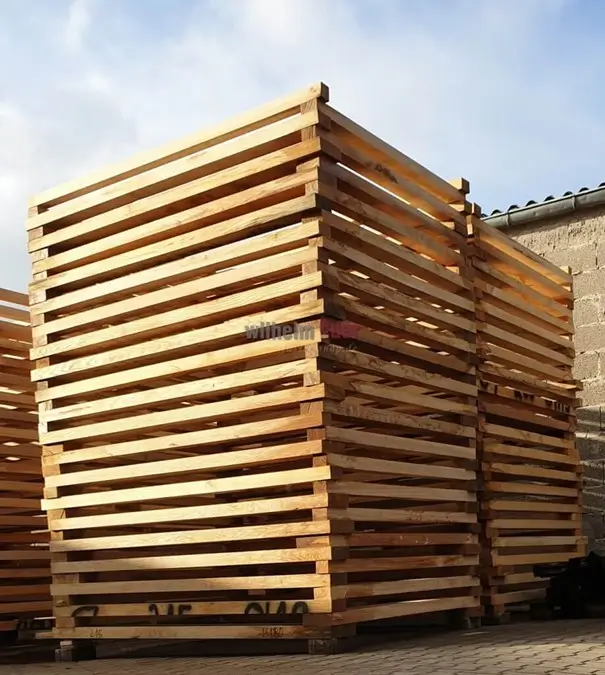 Einschnitt und Trocknung des Douglasienholzes unterscheiden sich kein bisschen von den Hölzern für den Fassbau. Es wird lange unter offenem Himmel getrocknet und sieht Sonne, Regen und Schnee. Also bedarf es langfristiger Planung und Schätzung von unserer Seite aus, sodass wir genügend Holz zur Verfügung haben.