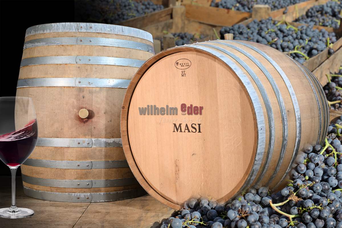 Frisch entleerte 225 l Amarone Fässer aus Italien. Amarone ist ein besonderer Rotwein aus Italien (Region Venetien), der durch ein einzigartiges Verfahren hergestellt wird. Die Trauben, aus denen der Amarone entsteht, trocknen mehrere Monate auf Holzgestellen oder Strohmatten in belüfteten Lagerräumen oder unter Dächern. In dieser Zeit werden sie in aufwendiger Handarbeit gewendet und umgeschichtet. Erst kurz bevor die Trauben zu Rosinen trocknen, beginnt die Kelter. Danach reift der Wein noch mindestens zwei Jahre im Holzfass. Es entsteht ein schwerer, kraftvoller, fast cremiger Wein in tiefroter Farbe und großer Aromenvielfalt. Den Namen trägt der Wein aufgrund seiner leicht bitteren Note. Bitter heißt auf Italienisch „amaro“. Fass-Hersteller: verschiedene Fass wird mit Holz- oder Silikonspund ausgeliefert. AnbauAngebaut wird er nordwestlich von Verona – zwischen dem Gardasee und Verona – im Weinbaugebiet Valpolicella mit fünf Weinbaubereichen. Amarone della Valpolicella besitzen seit 1968 die höchste italienische Qualitätsstufe DOCG (Denominazione di Origine Controllata e Garantita). Amarone besteht immer aus folgenden Rebsorten:- Corvina-Traube- Rondinella HerstellungNach dem Appassimento- oder Recioto-Verfahren werden die Trauben zunächst 2- 4 Monate in gut belüfteten Lagerräumen getrocknet (bis zur Hälfte ihres Gewichts verlieren die Trauben). Dadurch verbleibt viel Zucker und Extraktstoffe, was einen konzentrierten Wein bedeutet. Die Gärung stoppt sehr früh und der süße Amarone hat bis zu 15% Alc. Vol.. Wenn der Maische jedoch noch mehr Zeit gewährt wird, dann sorgen alkoholresistente Hefen dafür, dass der Restzucker in Alkohol umgewandelt wird und ein trockener Amarone mit 16-17% Alc. Vol. entsteht. Dieser Prozess heißt „Miracolo dell’Amarone“. Vorbelegte Holzfässer: Kerben im Holz, äußerliche Spannungsrisse oder unter Umständen ein unebener Boden sind keine Qualitätsmängel, sondern vielmehr durch die Eigenart der Bauweise und die Vorbenutzung der Fässer bestimmt. Die Funktionalität des Fasses ist dadurch nicht eingeschränkt. Die Fässer werden von uns bei der Ausgangskontrolle sehr sorgfältig auf Sensorik und technische Fehler geprüft. Für Cracks oder Risse, die während der Reifung auftreten, übernehmen wir keine Haftung. Eine mögliche und sinnvolle Reparatur ist keine Garantieleistung.  Alle Bilder sind Beispielbilder und optische Abweichungen sind möglich.